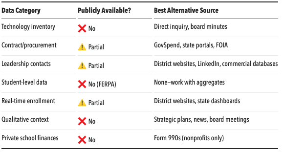 The education data you wish existed, and why it doesn't. Understanding these gaps will save you hours of fruitless searching