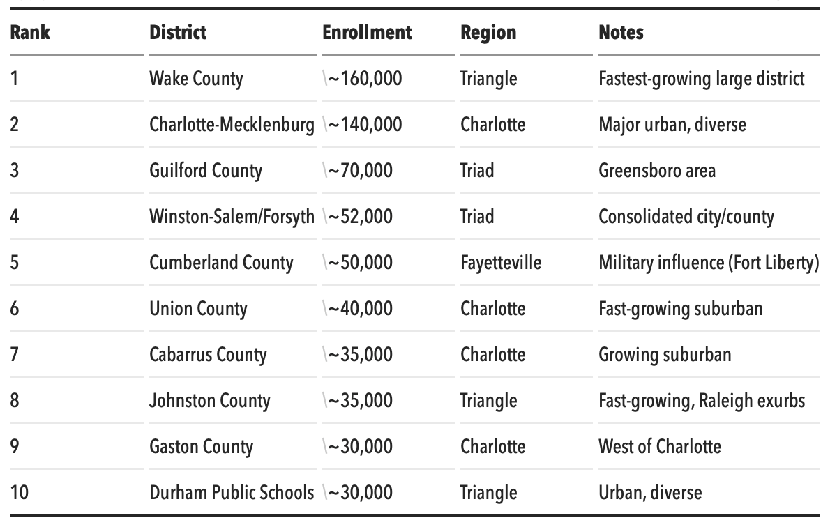 - Winston-Salem/Forsyth County (~52,000 students) – Major district, consolidated city/county