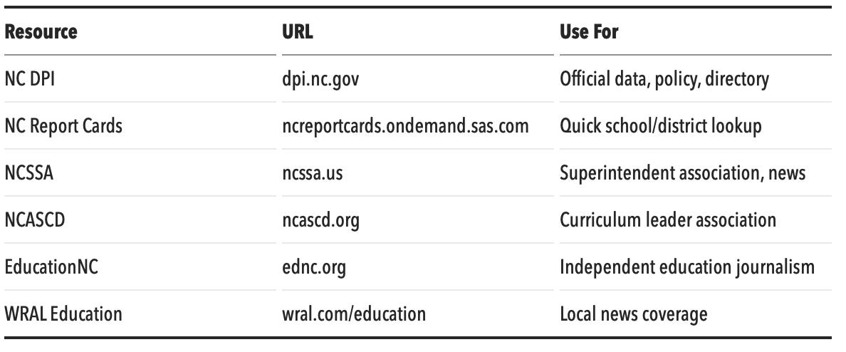 - Understand the political context: Education is politically contentious in NC. Stay neutral. Don't assume perspectives based on geography.